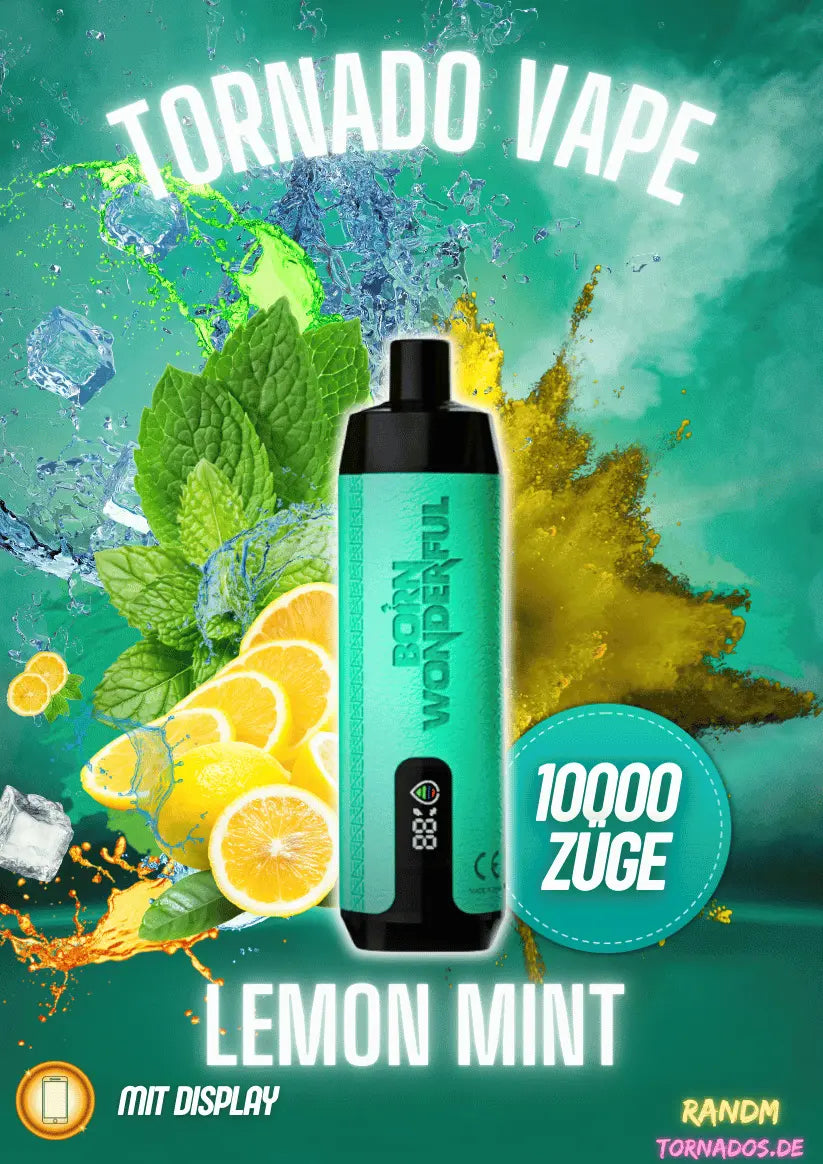 Erwache mit der Geschmacksexplosion der RandM Tornado 10000 “Lemon Mint”. deiner zuverlssigen Big Puff Vape. welche dich mit jedem Zug erf??llt und dir ein atemberaubendes Vape-Erlebnis garantiert.