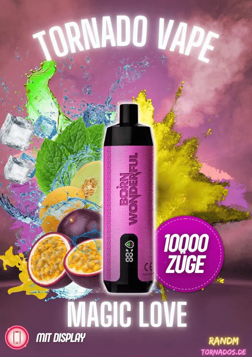 Erlebe eine magische Geschmacksreise mit der Randm Tornado 10000 Magic Love Vape. Diese verf??hrerische Mischung kombiniert s??e und fruchtige Noten zu einem einzigartigen Dampferlebnis. das deine Sinne verzaubert und dir das Gef??hl gibt. in eine andere Welt einzutauchen.
