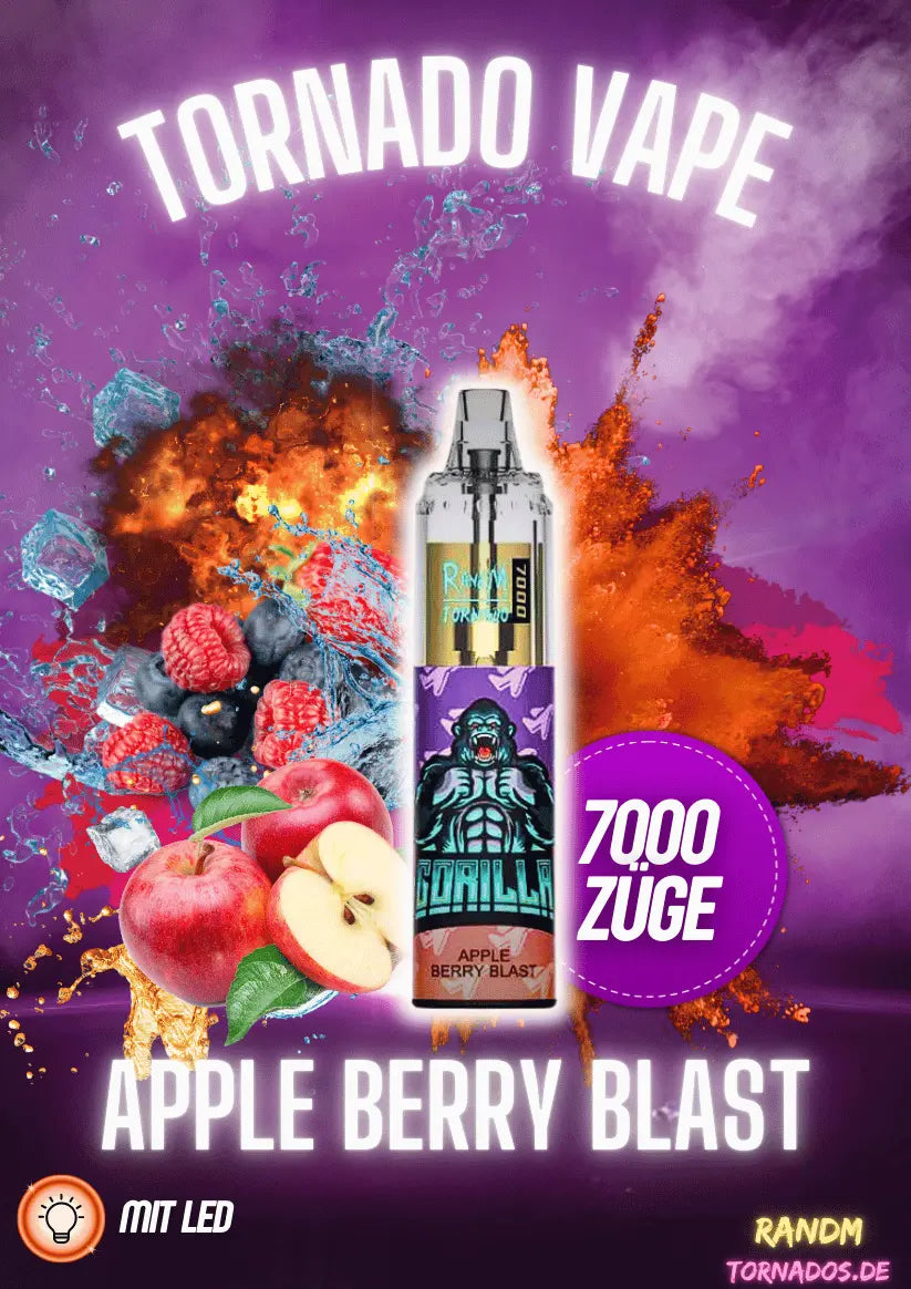 Komm mit auf eine wilde Geschmacksreise mit dem RandM Tornado 7000 “Apple Berry Blast??- Dein nchster Zug ist ein kleines Fest!