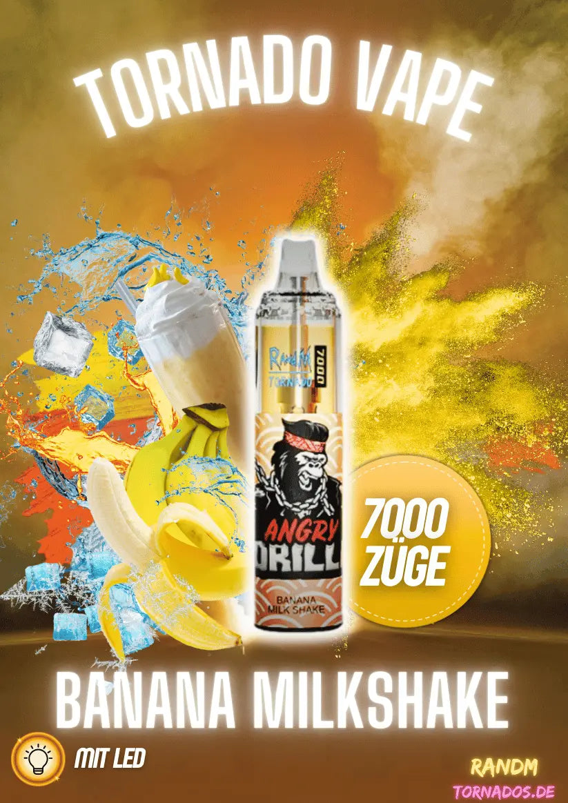 Tauche ein in den cremigen Genuss des RandM Tornado 7000 Banana Milkshake. Diese Vape kombiniert das volle. s??e Aroma reifer Bananen mit einer samtigen. milchigen Basis ?C ein verwhnender Gaumenschmaus. der dich in Erinnerungen an