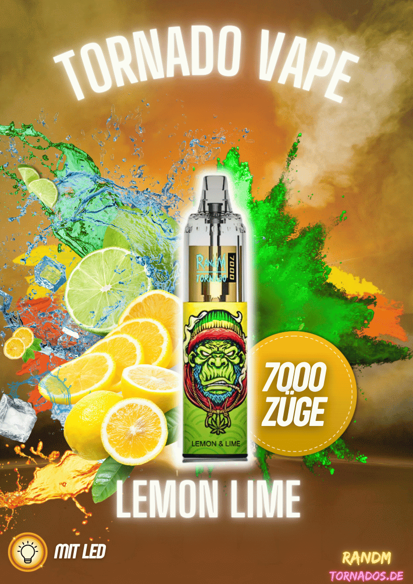 Erlebe eine belebende Geschmacksexplosion mit der Randm Tornado 7000 Vape Lemon Lime. Diese Vape-Variante vereint die spritzige Frische von Zitronen und Limetten in einem harmonischen Mix. der deinen Gaumen mit jedem Zug erfrischt. Lemon Lime?? ist die perfekte Wahl f??r alle. die fruchtige Zitrusaromen und eine prickelnde Frische lieben.