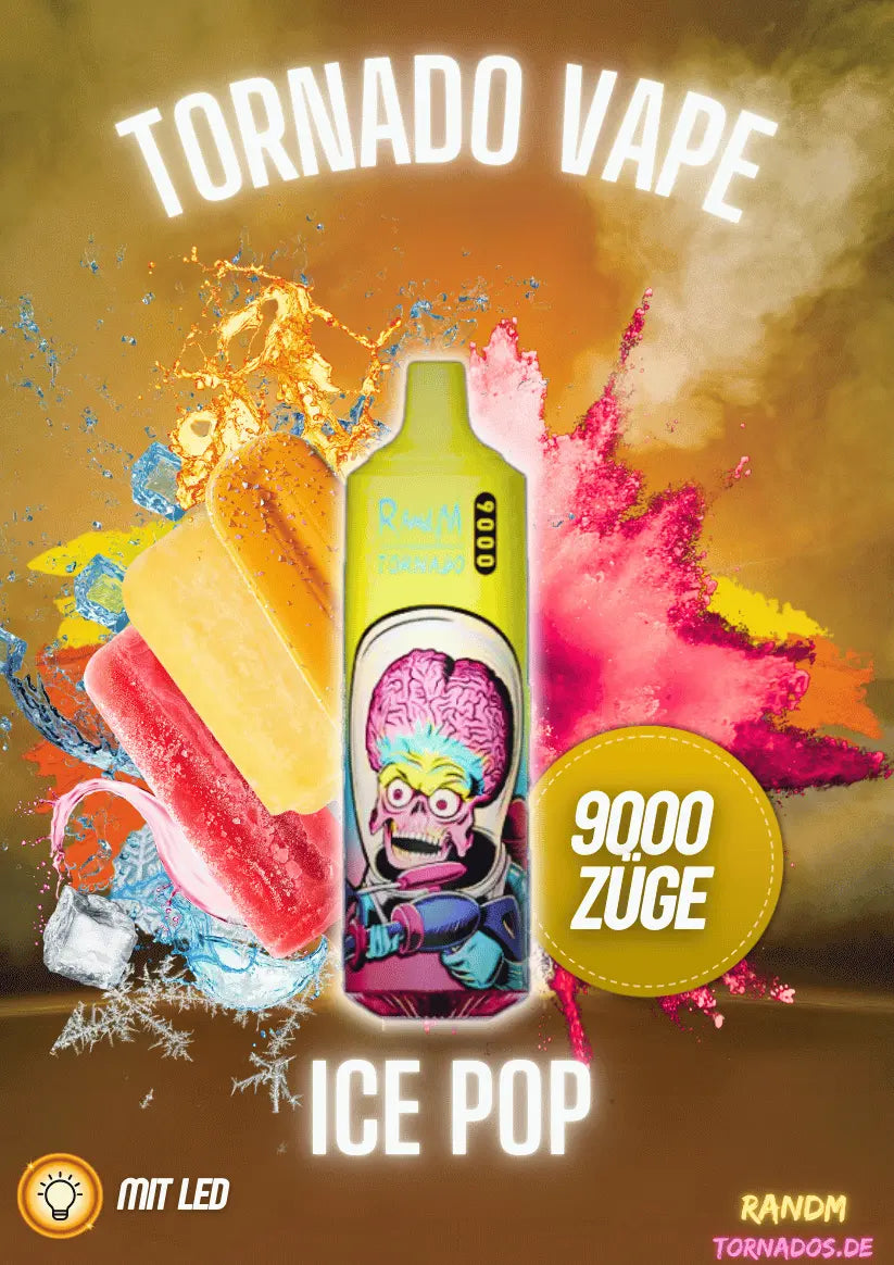 Erleben Sie selbst. warum der Tornado Vape 9000 die erste Wahl f??r anspruchsvolle Dampfer ist. Die Kombination aus hochwertiger RandM Technologie und dem erfrischenden Ice Pop Geschmack macht diesen Premium-Verdampfer zu einem unverzichtbaren Begleiter f??r Genieer. Der Tornado 9K vereint Innovation. Qualitt und Geschmack in einem Produkt. das keine W??nsche offen lsst. Maximaler Genuss garantiert.